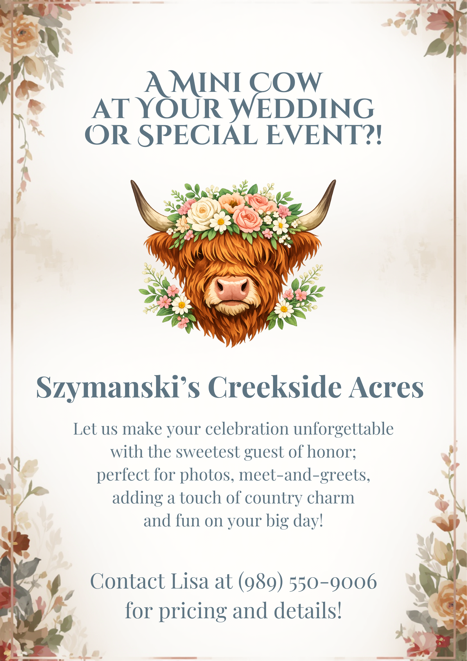 Imagine delighting your guests with the sweetest guest of honor — a charming mini Highland cow — perfect for photos, meet-and-greets, and adding a unique touch of country magic to weddings, parties, showers, and special events.